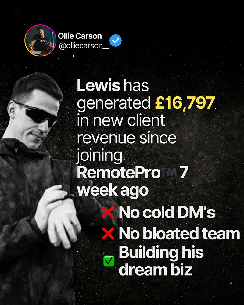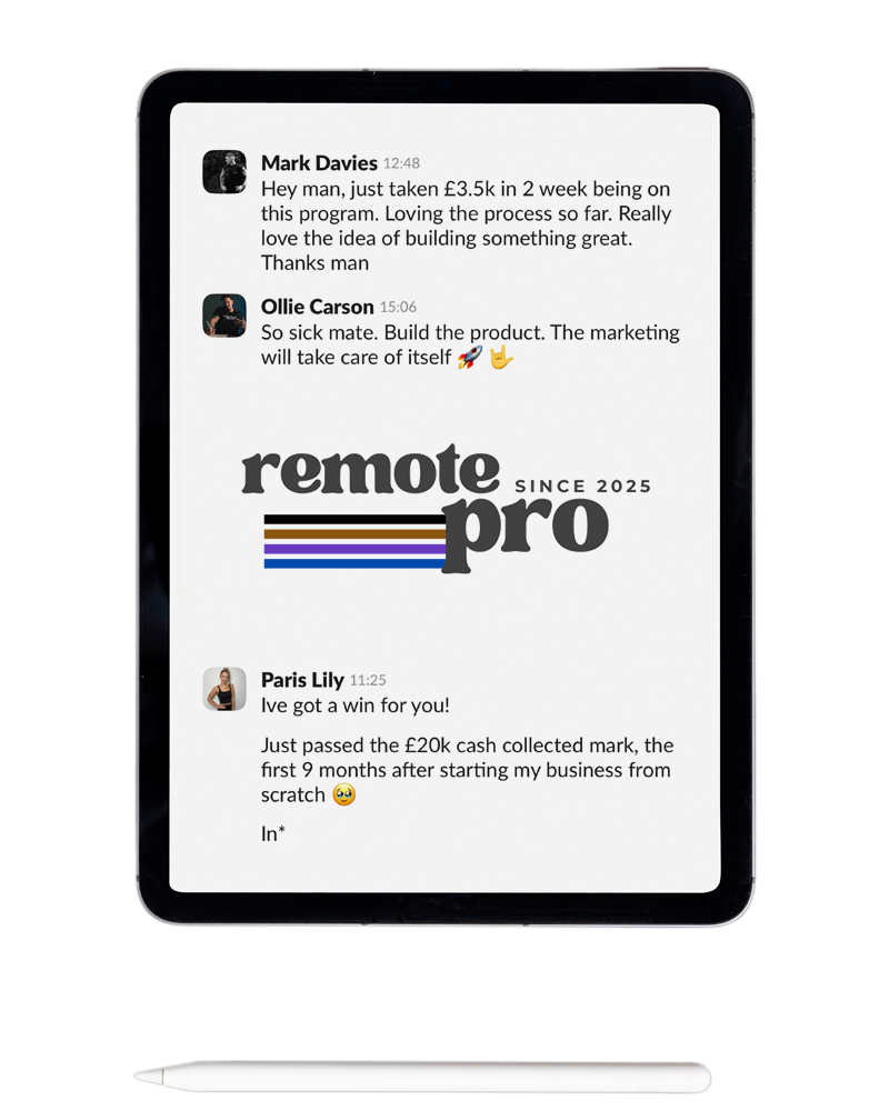 I really want to create some GREAT new case studies, so as part of this RemotePro™️ summer accelerator Group I’ll work closely with you over the next 6 weeks to turn your business into a banger success story, even better than the many success stories we’ve created over the past year.